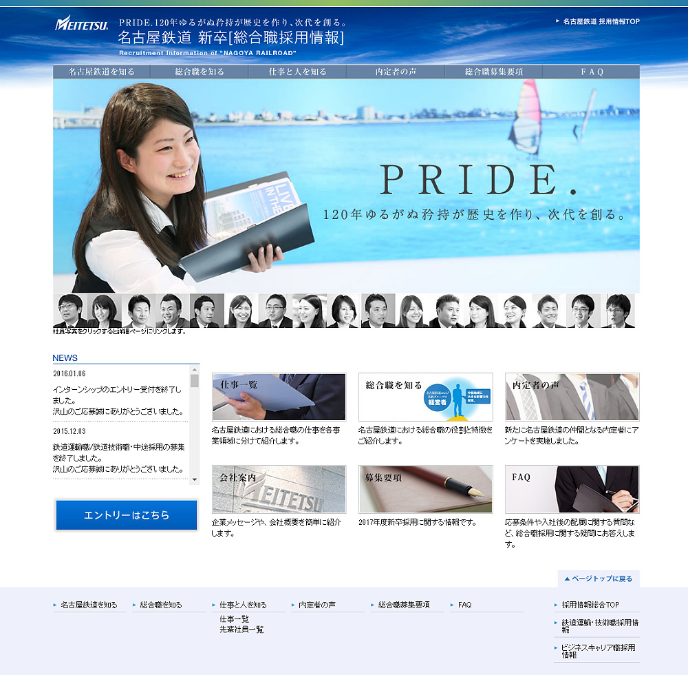 鉄道のみならず140社を超えるグループ会社が展開する広範なフィールドで活躍する社員への取材記事を中心に、1人1人が持つ使命感と、街づくりに貢献する想いを紹介。事業領域、入社年などの検索機能を設け操作性の高いサイトにしました。